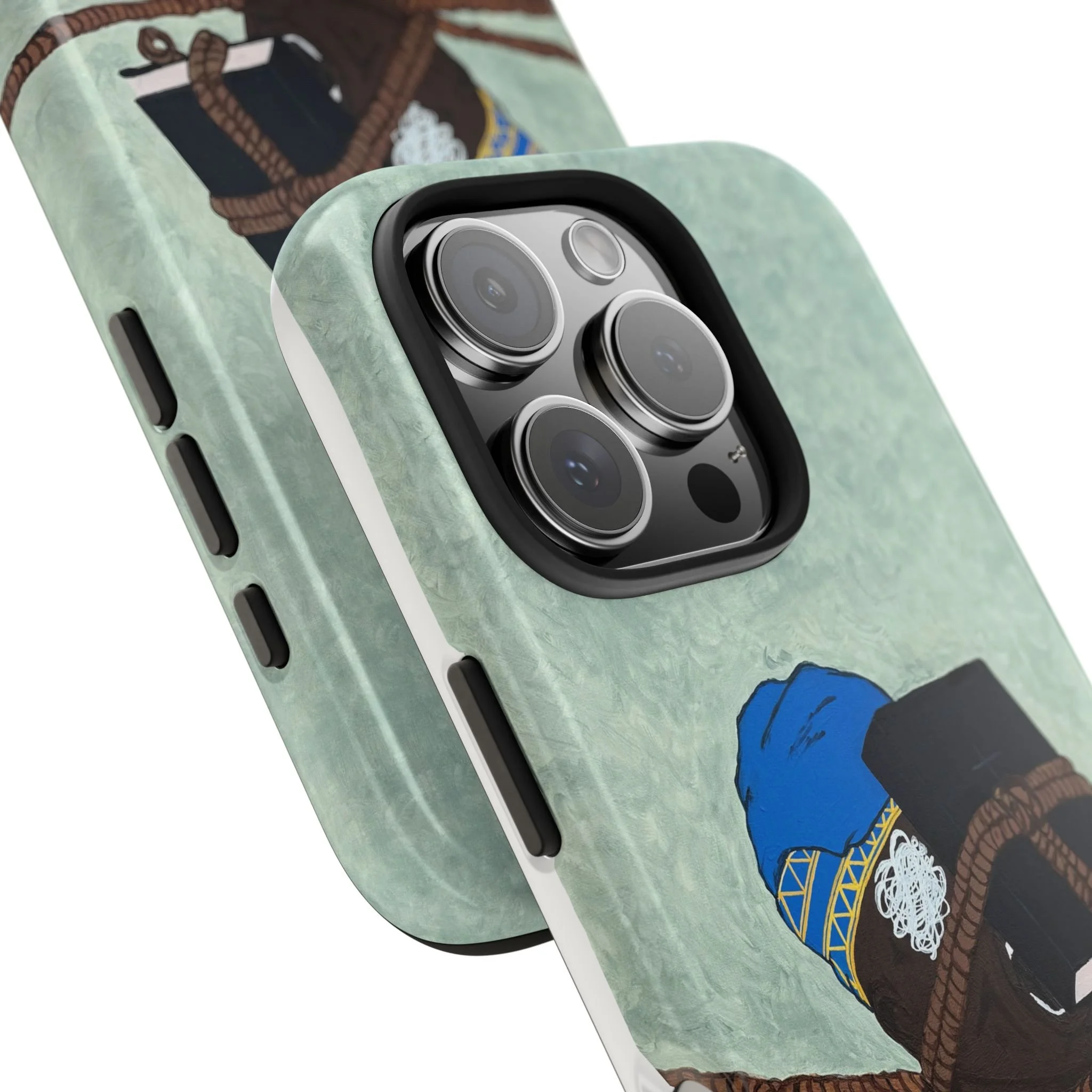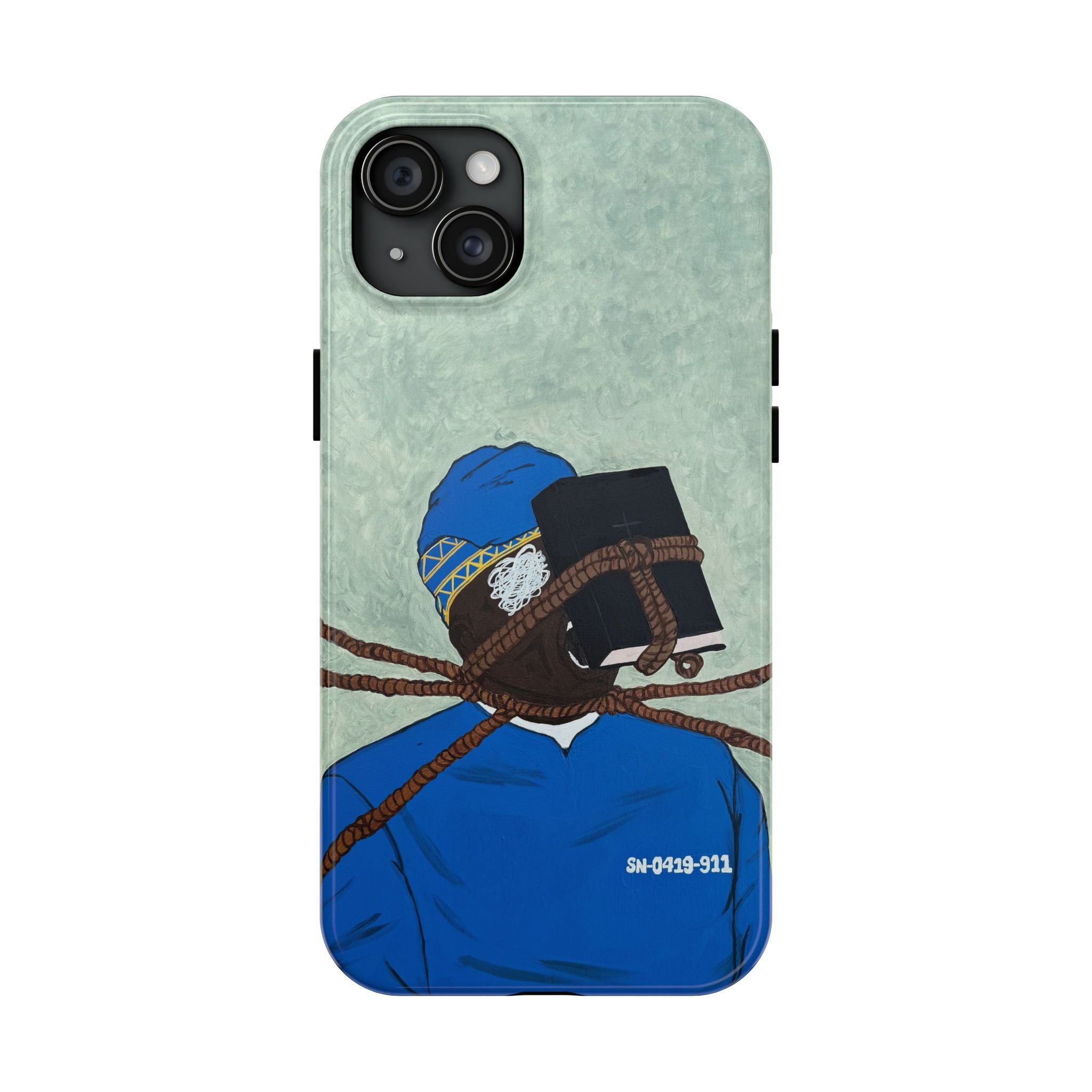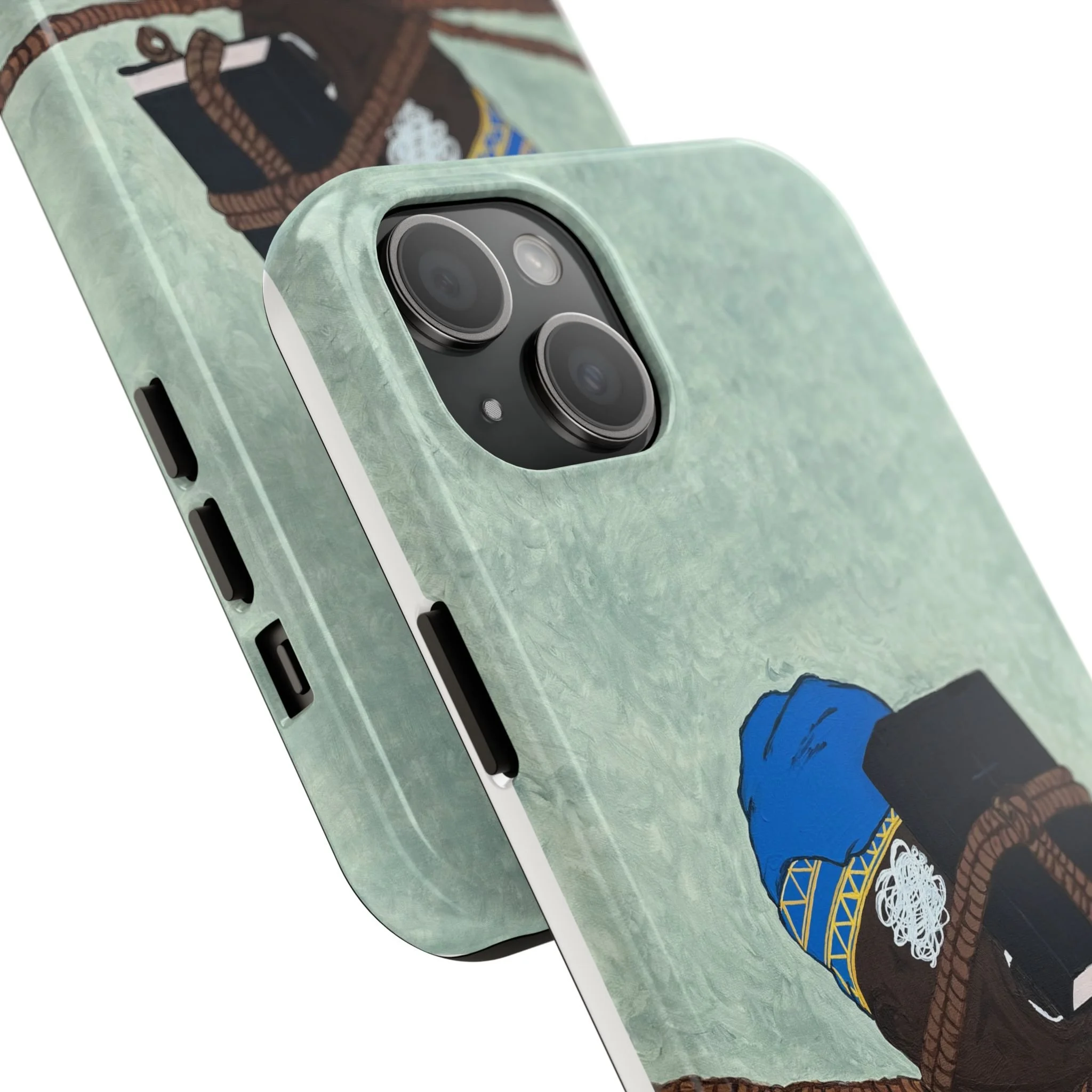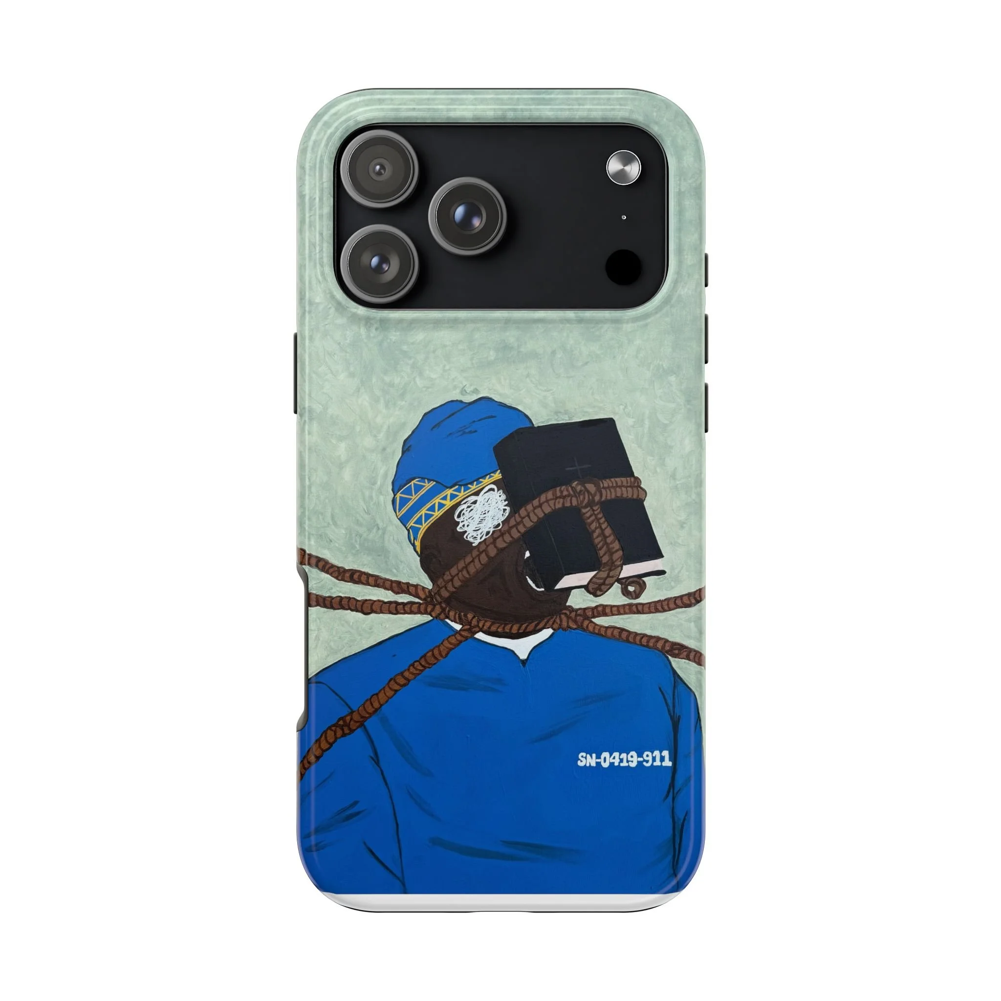 This phone case carries a quiet, thoughtful edge — a figure in blue with their eyes obscured by a wrapped box, ropes crossing the scene like a map of constraints and resilience. The muted, textured background and glossy finish give the artwork depth while the flexible rubber liner and two-piece polycarbonate shell stand ready for everyday knocks. It’s the kind of case that reads like a statement: protective, art-forward, and a little mysterious. Slip it on and your phone gains both long-lasting weather resistance and personality that starts conversations.