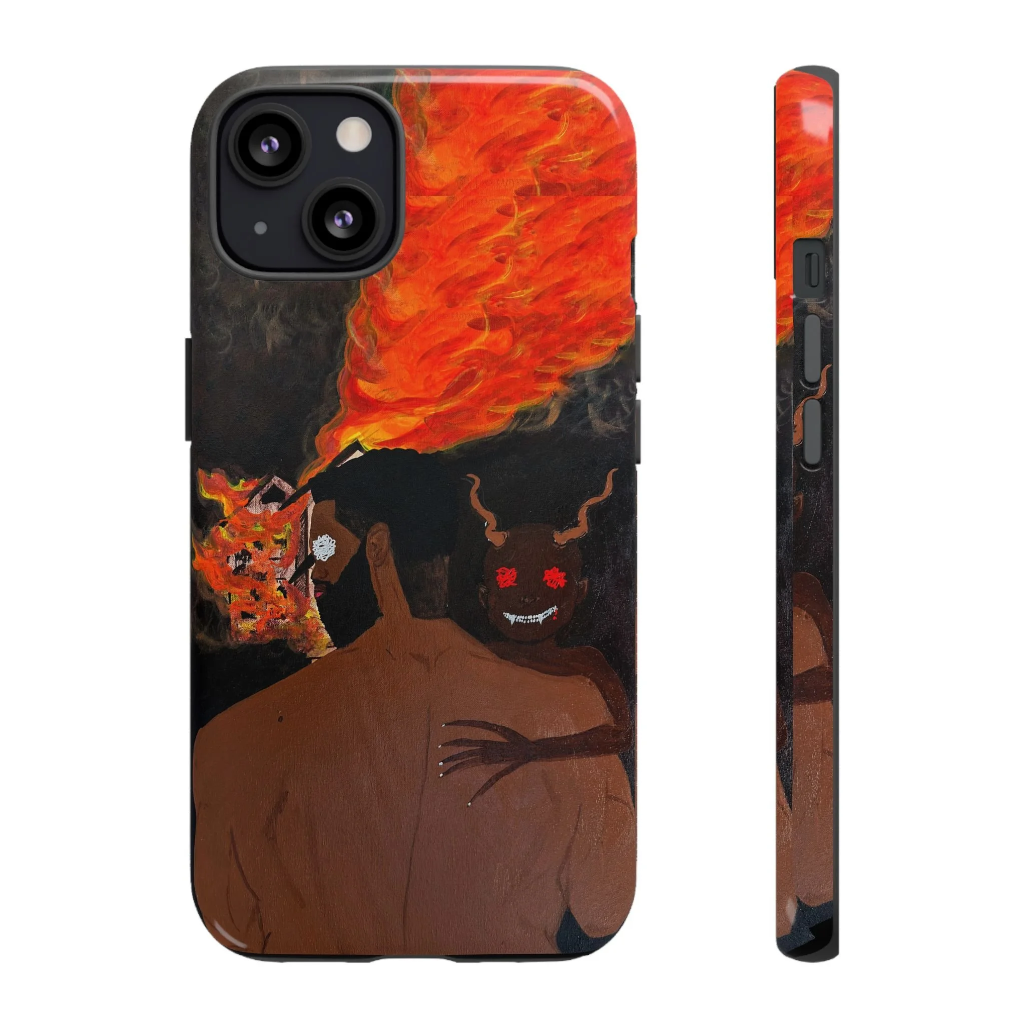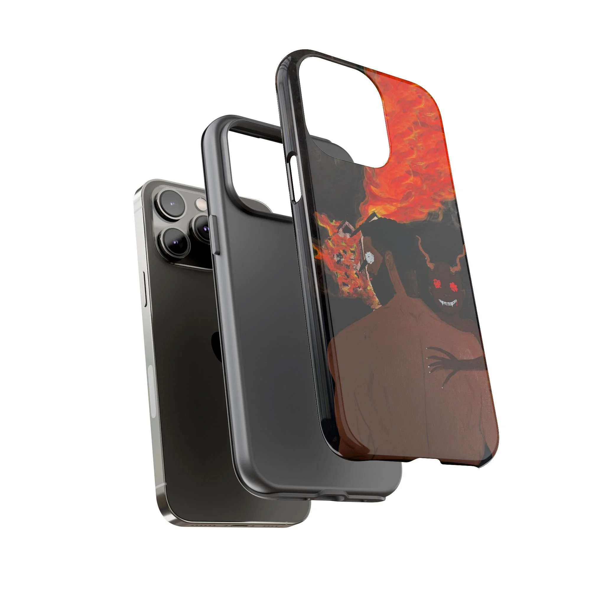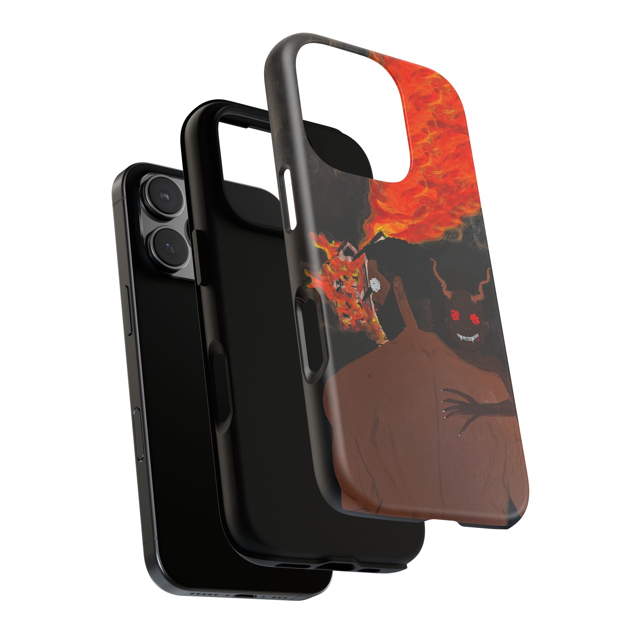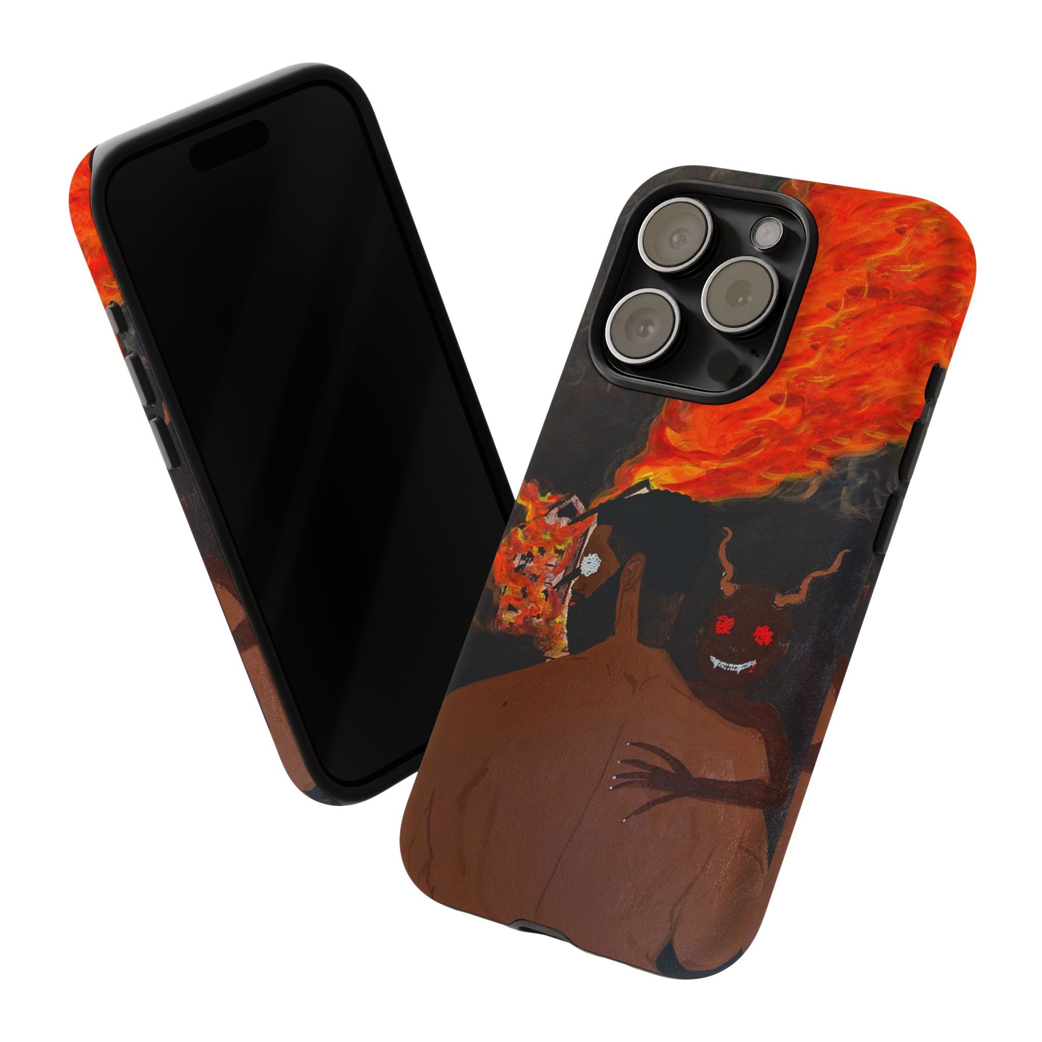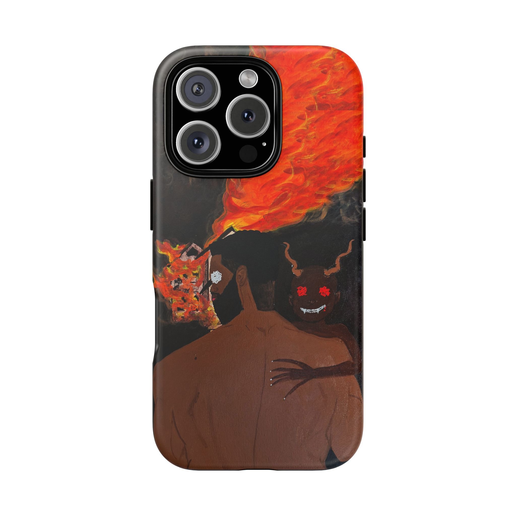 This tough phone case carries attitude — a dark, hand-painted scene with flickering flames and a shadowy figure that feels part myth, part urban legend. The dual-layer shell and soft TPU liner work together to absorb shocks and guard your device while the full-wrap print keeps the artwork vivid across the edges. It wears well on daily commutes and late-night walks, adding a raw, expressive edge to a pocket or bag. Built to handle drops and everyday knocks, it also resists outdoor fading thanks to UV protection. Keep it dry and away from heavy alcohol-based products to preserve the finish, and you'll have striking protection that keeps its story intact.