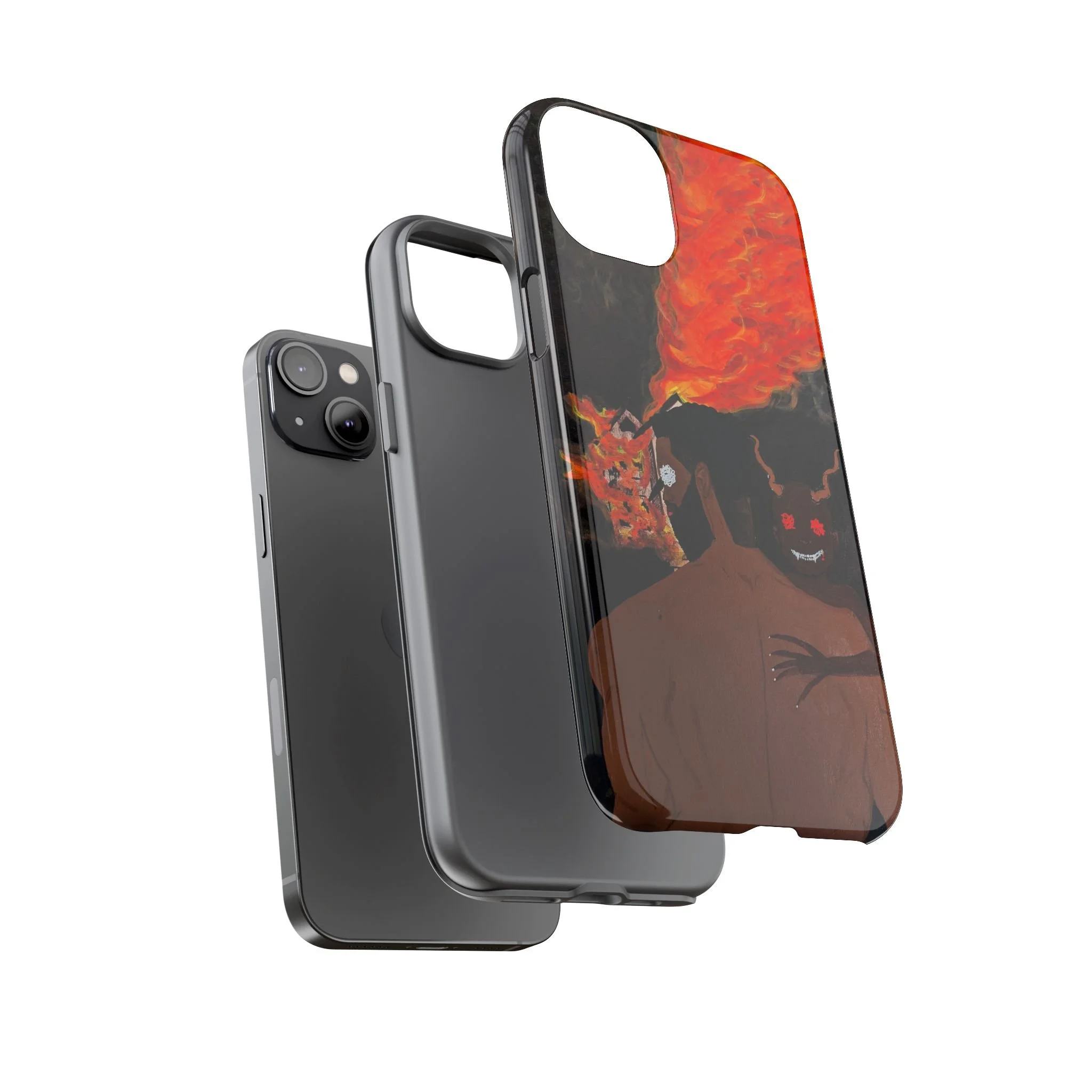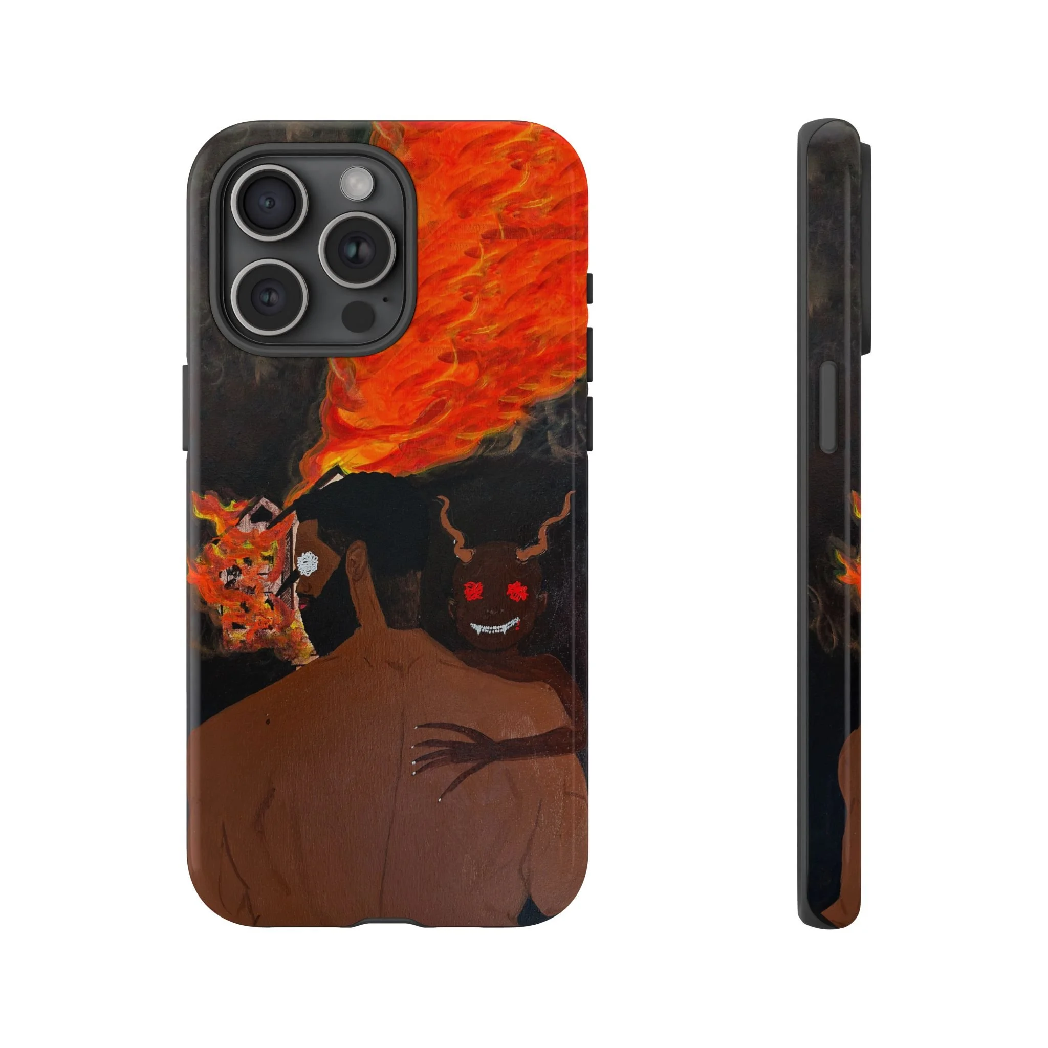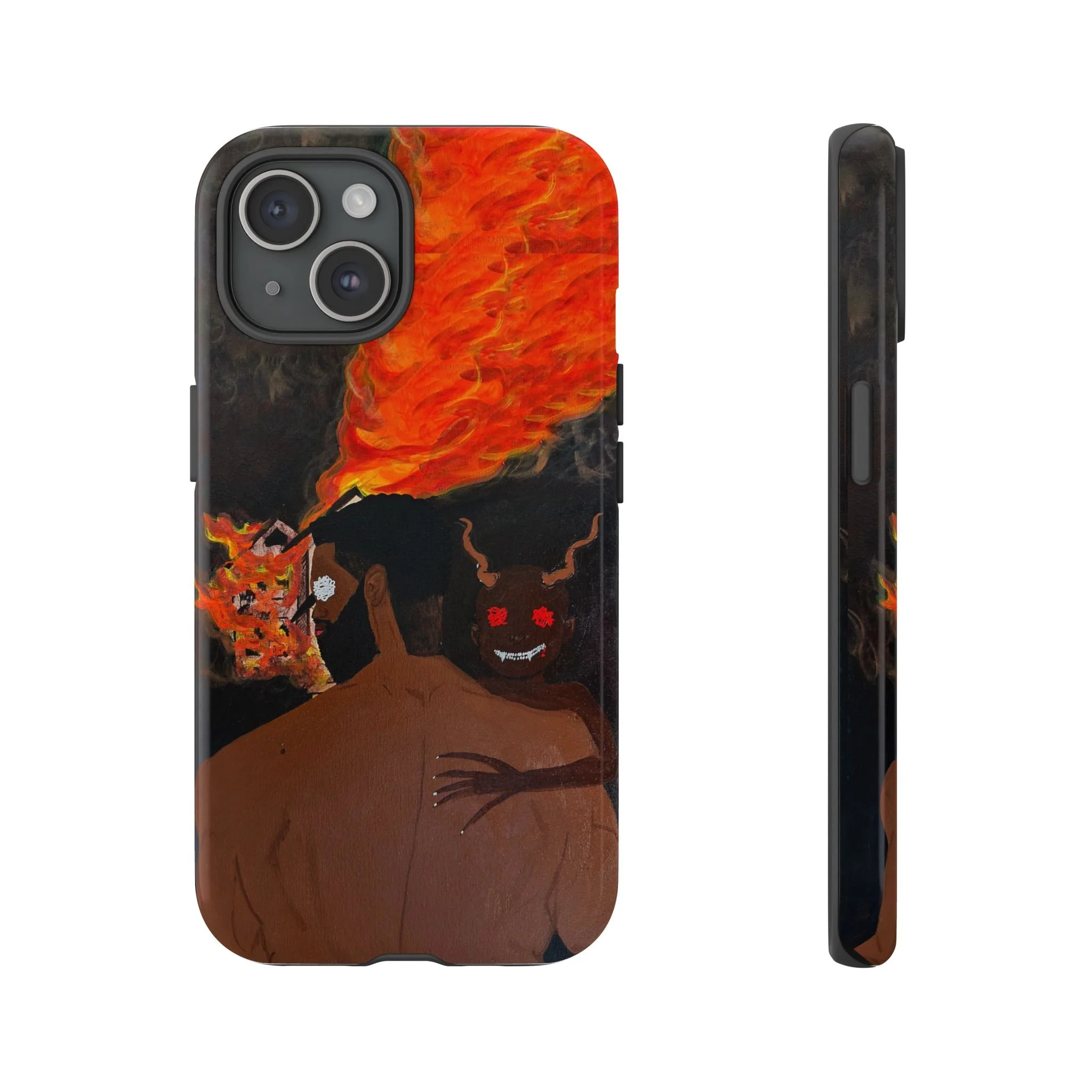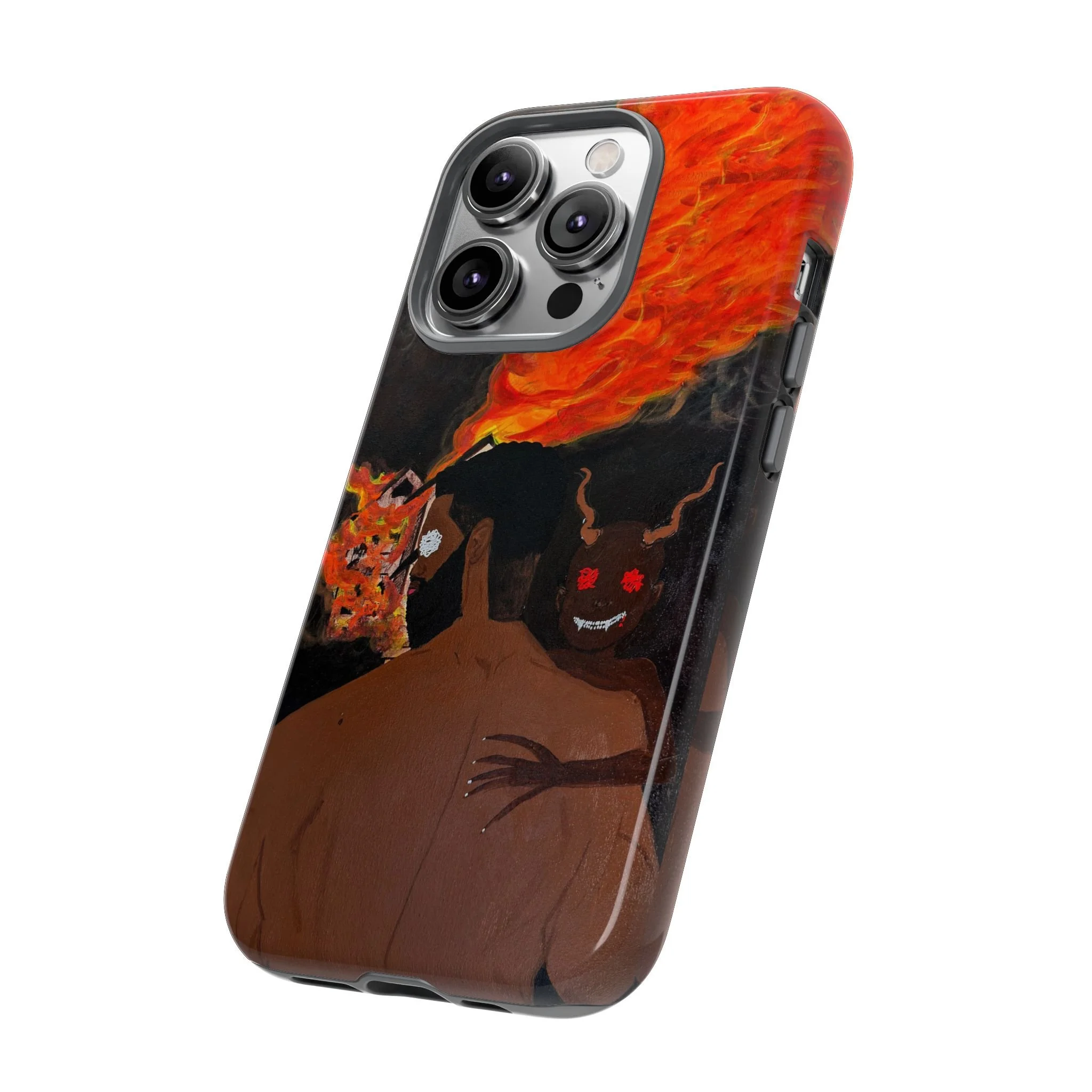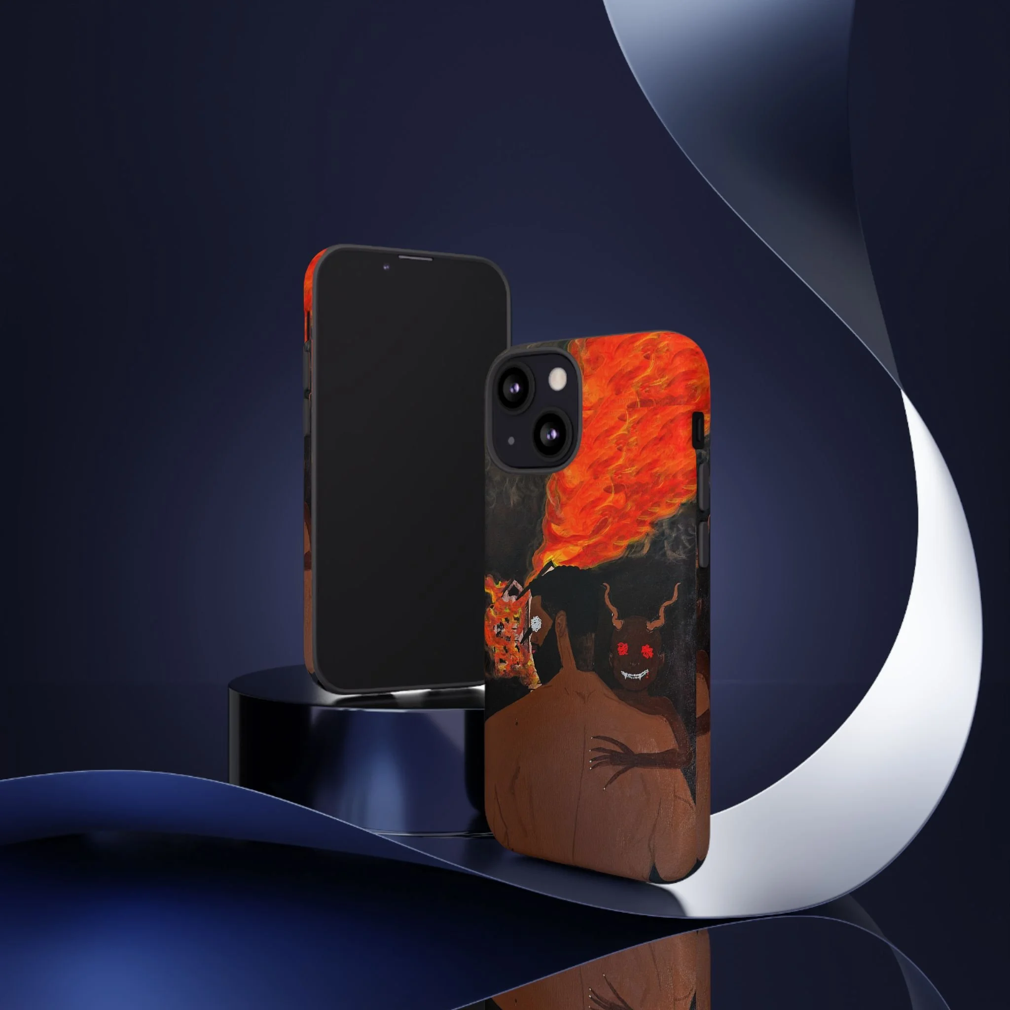 This tough phone case carries attitude — a dark, hand-painted scene with flickering flames and a shadowy figure that feels part myth, part urban legend. The dual-layer shell and soft TPU liner work together to absorb shocks and guard your device while the full-wrap print keeps the artwork vivid across the edges. It wears well on daily commutes and late-night walks, adding a raw, expressive edge to a pocket or bag. Built to handle drops and everyday knocks, it also resists outdoor fading thanks to UV protection. Keep it dry and away from heavy alcohol-based products to preserve the finish, and you'll have striking protection that keeps its story intact.