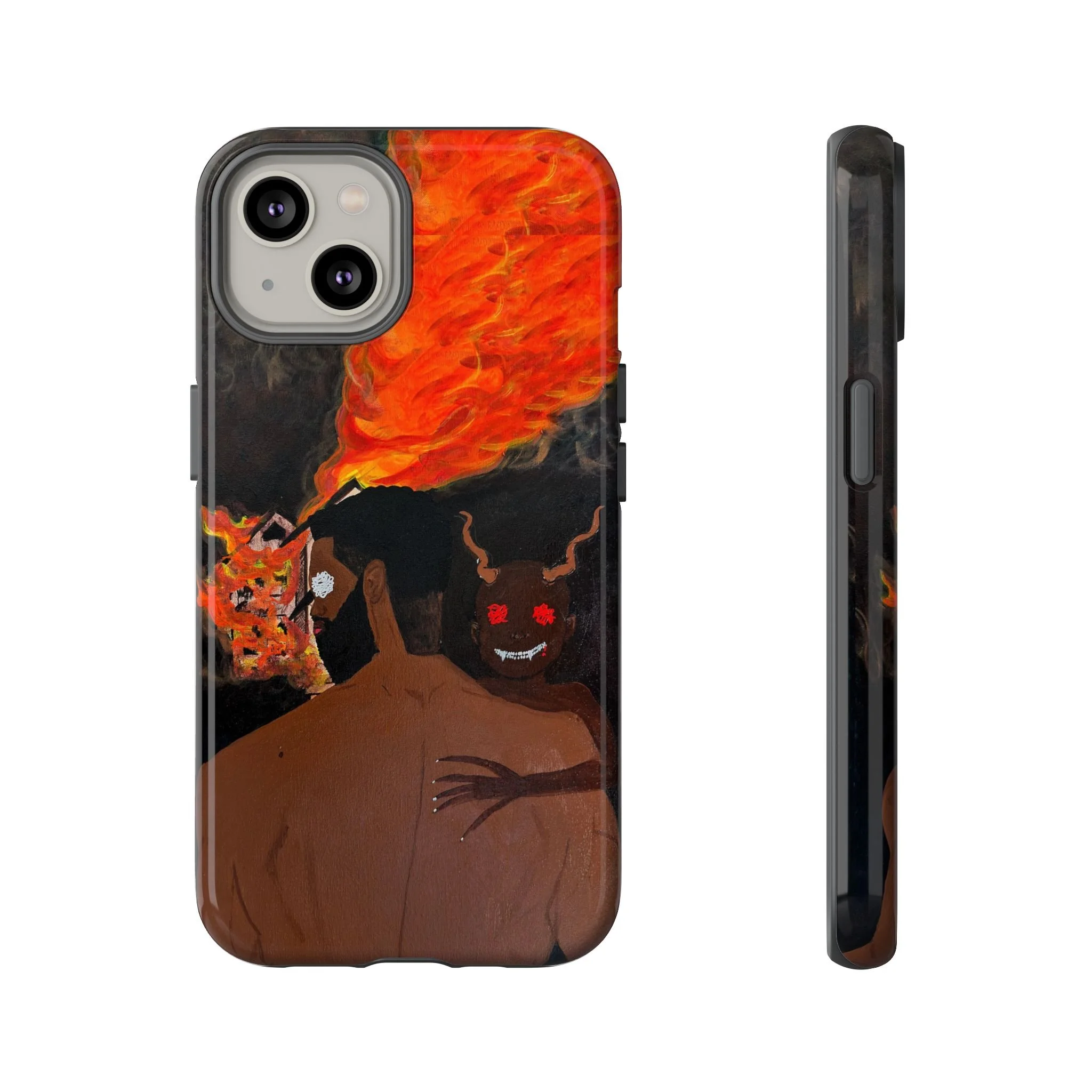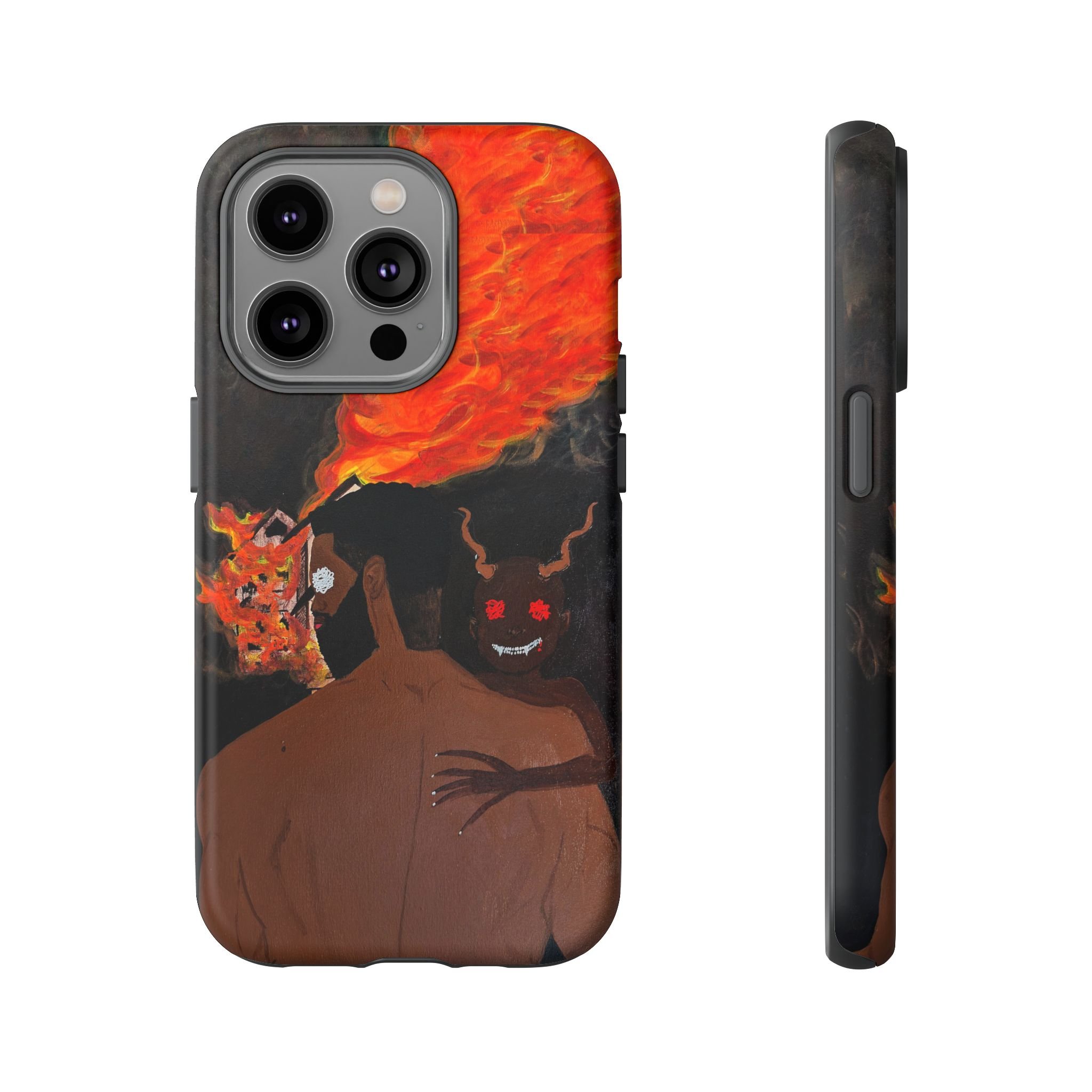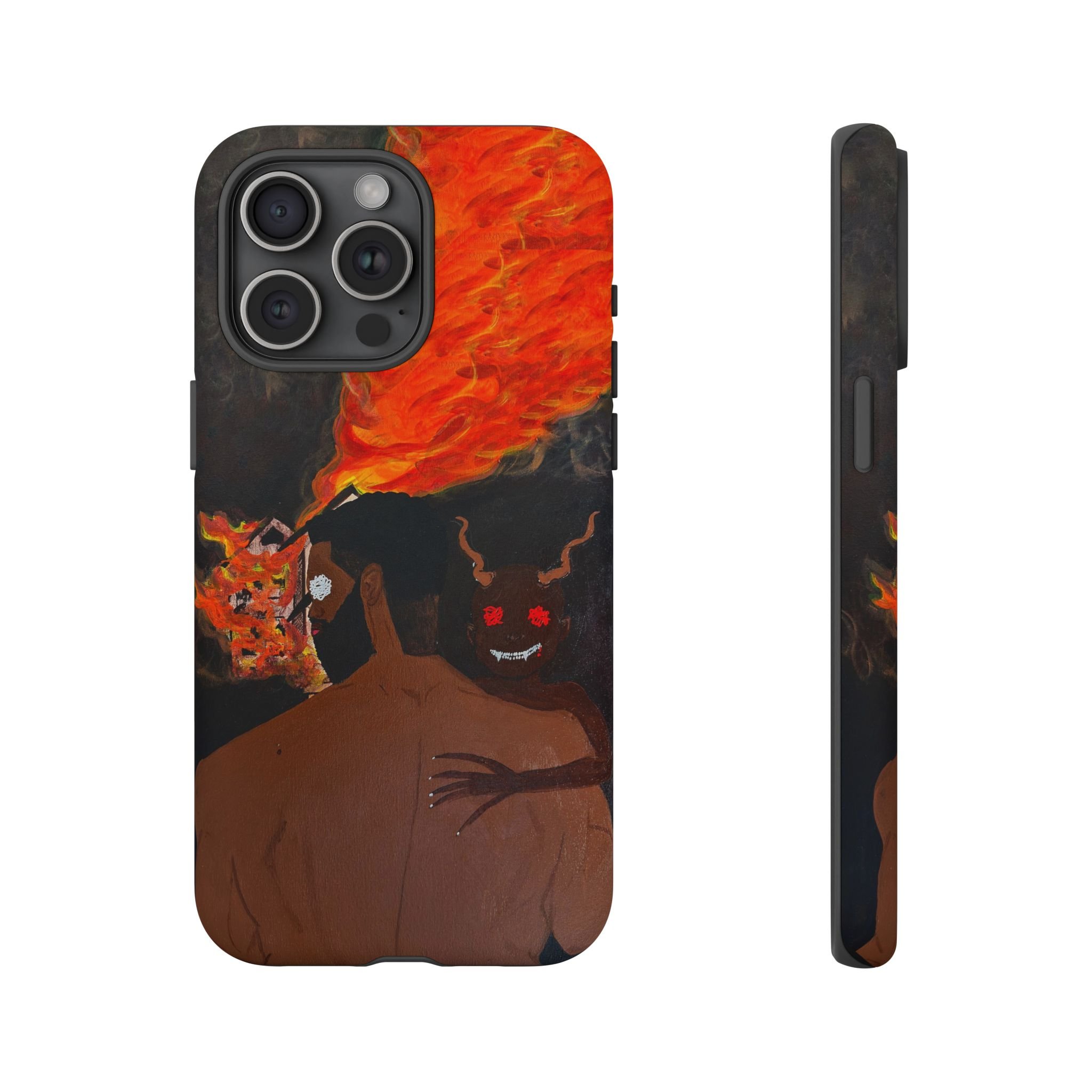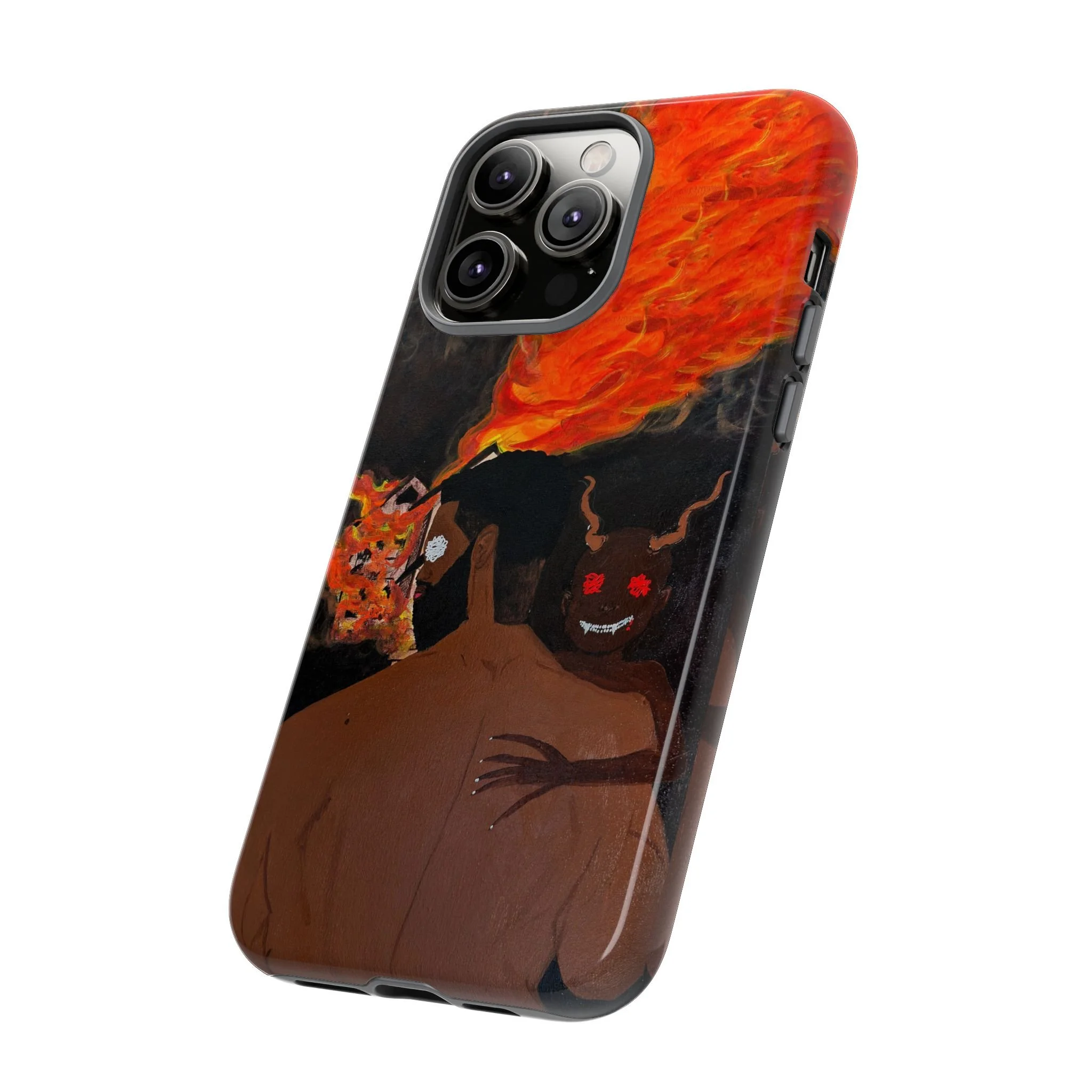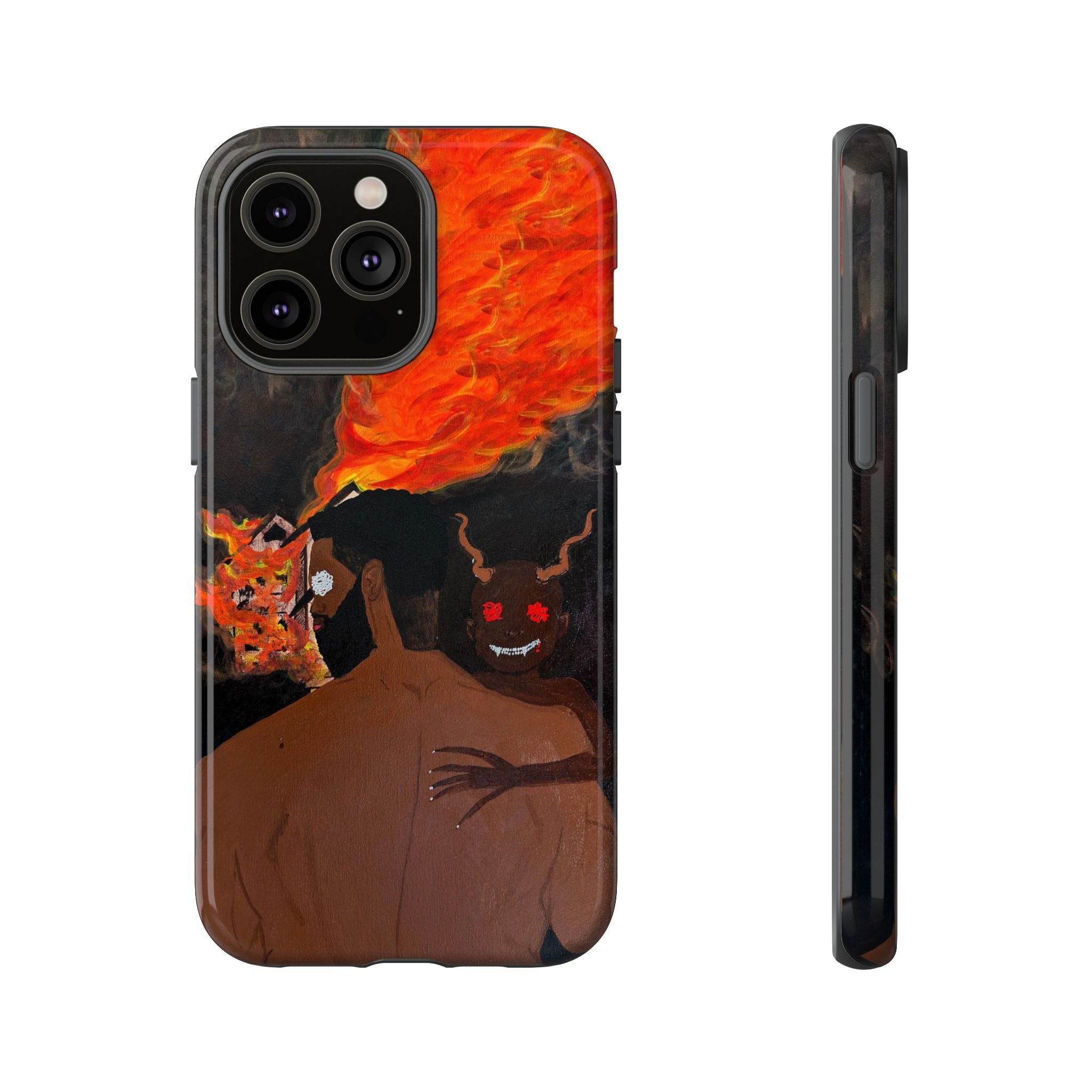 This tough phone case carries attitude — a dark, hand-painted scene with flickering flames and a shadowy figure that feels part myth, part urban legend. The dual-layer shell and soft TPU liner work together to absorb shocks and guard your device while the full-wrap print keeps the artwork vivid across the edges. It wears well on daily commutes and late-night walks, adding a raw, expressive edge to a pocket or bag. Built to handle drops and everyday knocks, it also resists outdoor fading thanks to UV protection. Keep it dry and away from heavy alcohol-based products to preserve the finish, and you'll have striking protection that keeps its story intact.