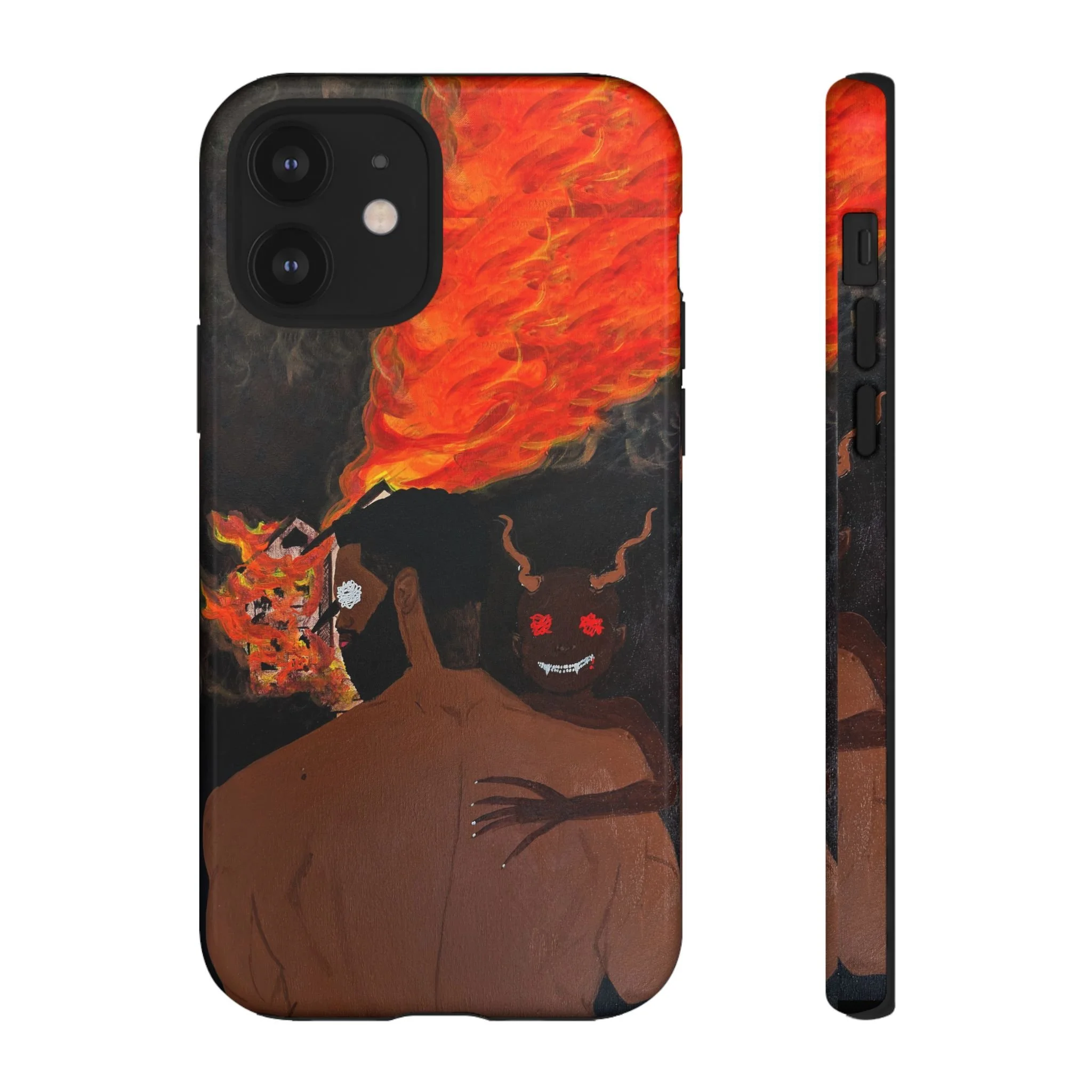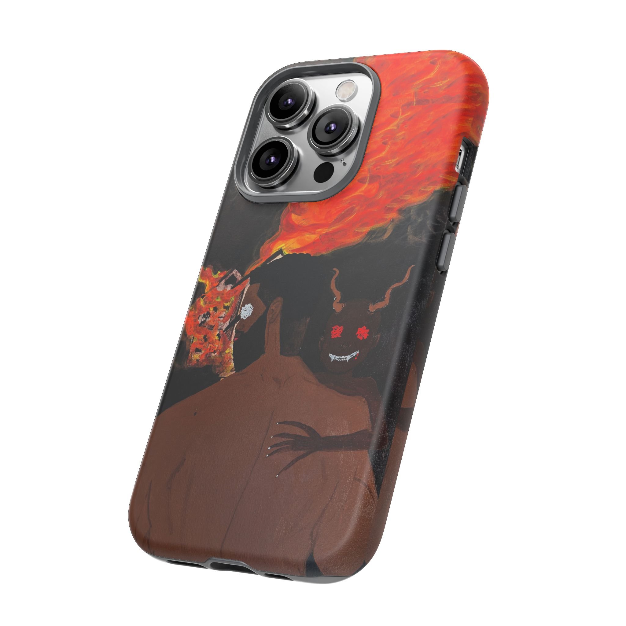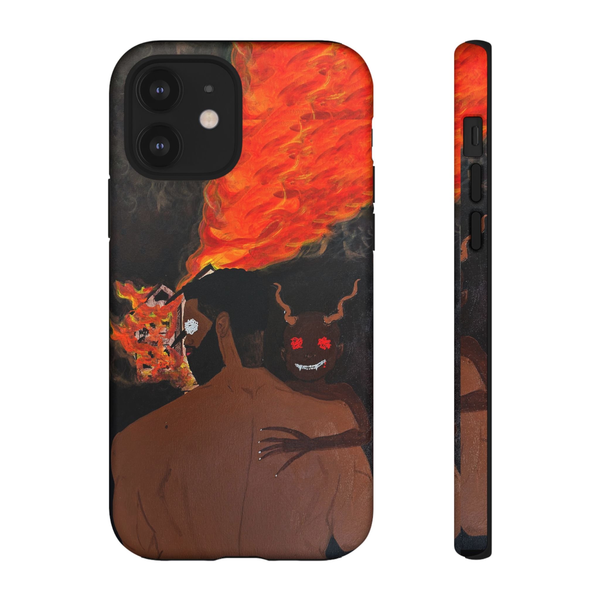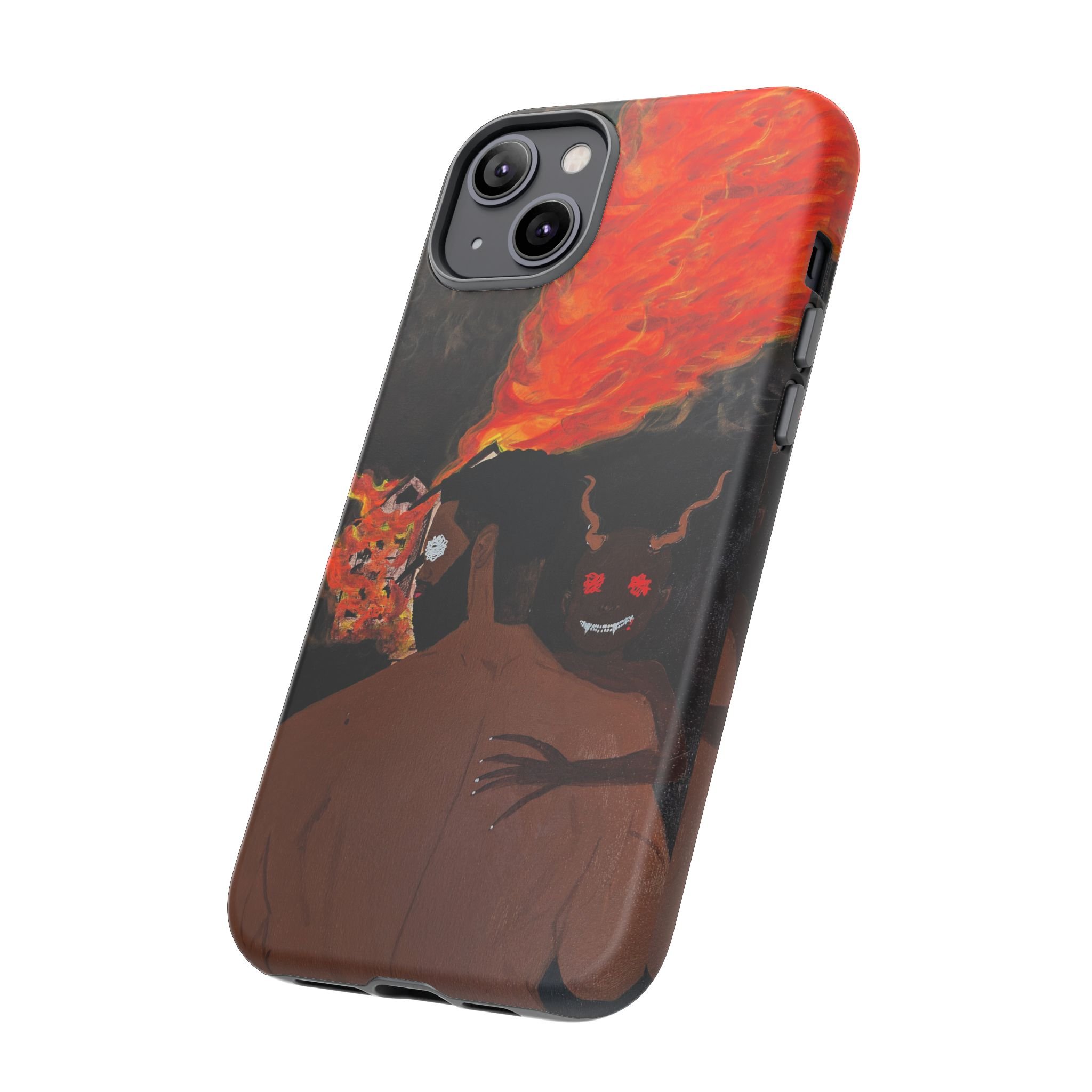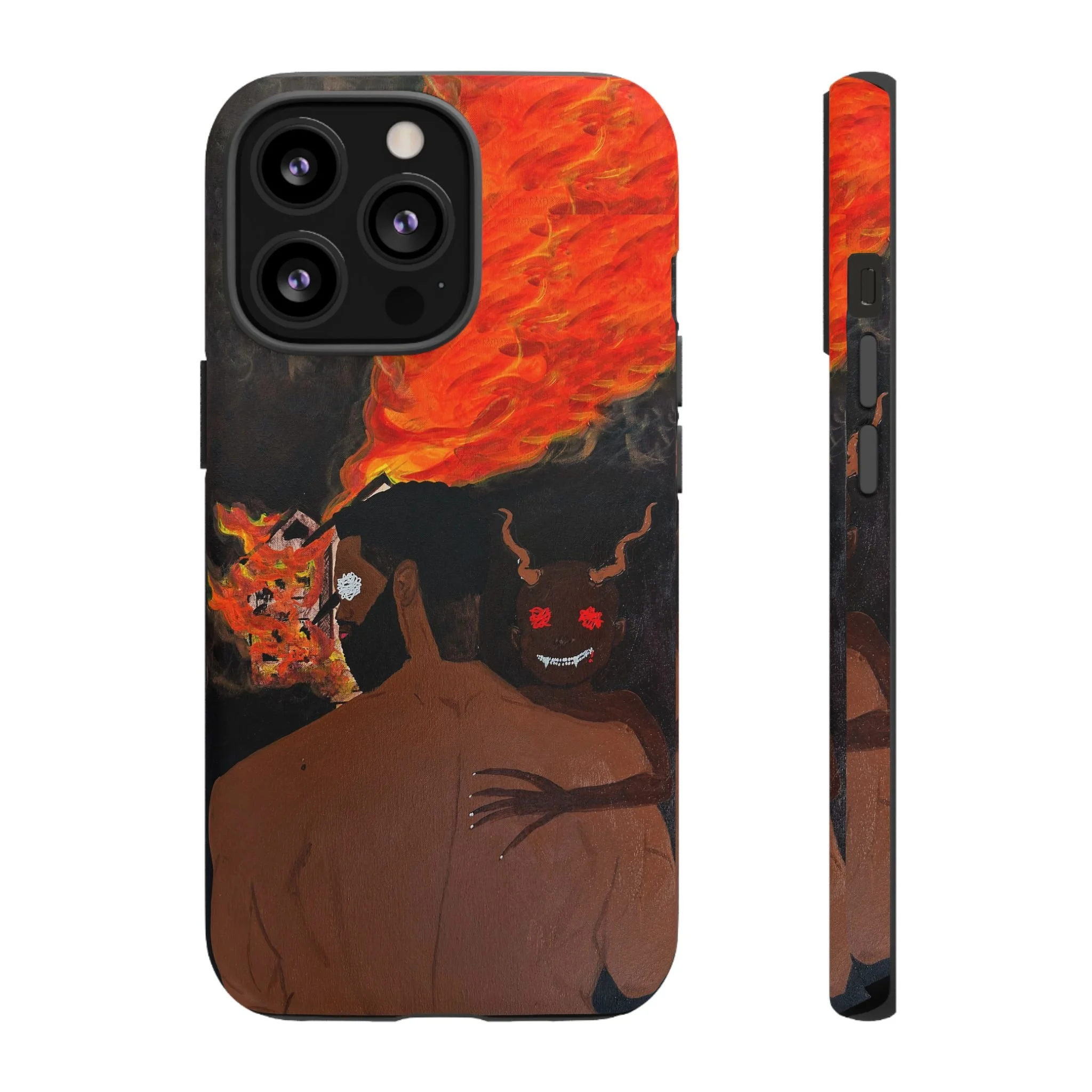 This tough phone case carries attitude — a dark, hand-painted scene with flickering flames and a shadowy figure that feels part myth, part urban legend. The dual-layer shell and soft TPU liner work together to absorb shocks and guard your device while the full-wrap print keeps the artwork vivid across the edges. It wears well on daily commutes and late-night walks, adding a raw, expressive edge to a pocket or bag. Built to handle drops and everyday knocks, it also resists outdoor fading thanks to UV protection. Keep it dry and away from heavy alcohol-based products to preserve the finish, and you'll have striking protection that keeps its story intact.